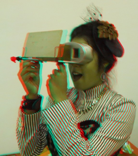 Holocenter stereoscopic picture Fram med papperglasögonen